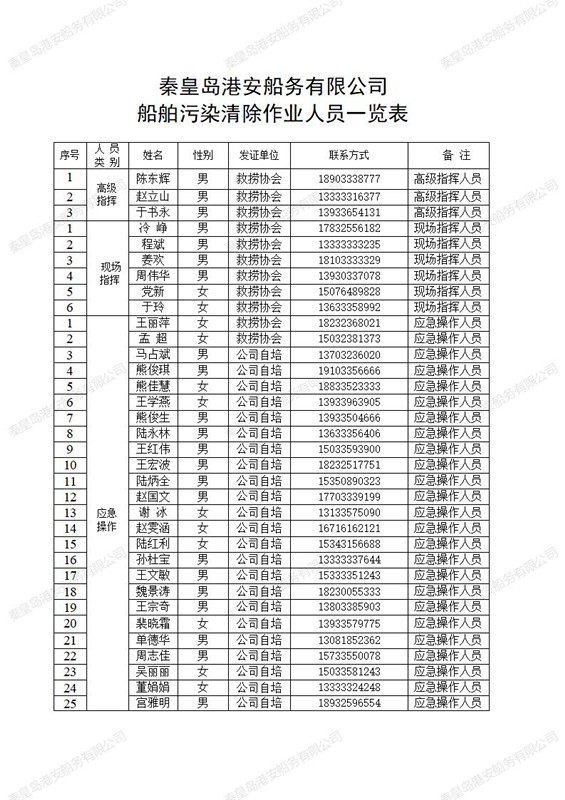 秦皇島港安船務(wù)有限公司成立于2021年3月25日,2021年8月28日于公司網(wǎng)站公布“根據(jù)《中華人民共和國(guó)船舶污染海洋環(huán)境應(yīng)急防備和應(yīng)急處置管理規(guī)定》及其附表的《能力要求》秦皇島港安船務(wù)有限公司的應(yīng)急清污能力現(xiàn)已符合《能力要求》規(guī)定的二級(jí)能力要求。”