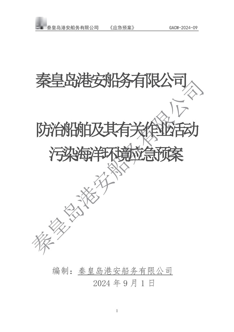 依據(jù)《中華人民共和國(guó)防治船舶污染海洋環(huán)境管理?xiàng)l例》、《中華人民共和國(guó)船舶污染海洋環(huán)境應(yīng)急防備和應(yīng)急處置管理規(guī)定》的要求,公司制定了《海上污染清除作業(yè)方案》、《海上污染物處理方案》、《海上溢油應(yīng)急反應(yīng)預(yù)案》。